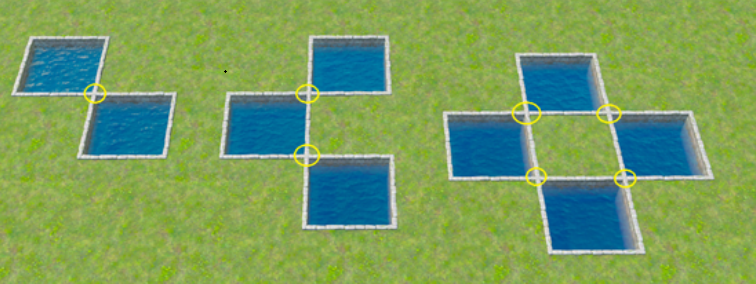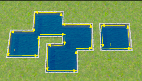 图2 拼接水池存在内陆的情况 为了美观考虑,小倩不允许玩家在编辑水池时出现矩形之间只有一个交点的情况,如图3所示。