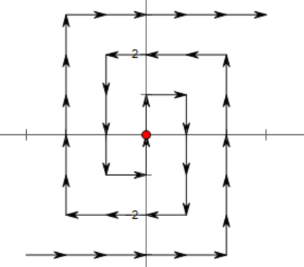 假设\(f(0)=(0,0)\)。那么一开始先往上走\(1\)步,再往右走\(1\)步,接下来往下走\(3\)步,再往左走\(3\)步,再往上走\(5\)步……那么\(\mathbb{Z}\)对应的是步数,\(\mathbb{Z\times Z}\)则是走到的顶点。