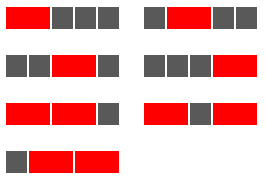 Assuming that colours cannot be mixed there are \(7 + 3 + 2 = 12\) ways of replacing the black tiles in a row measuring five units in length.