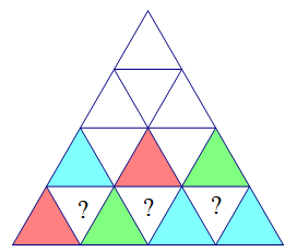 那么,考虑倒三角形的涂色方案,如下图所示: