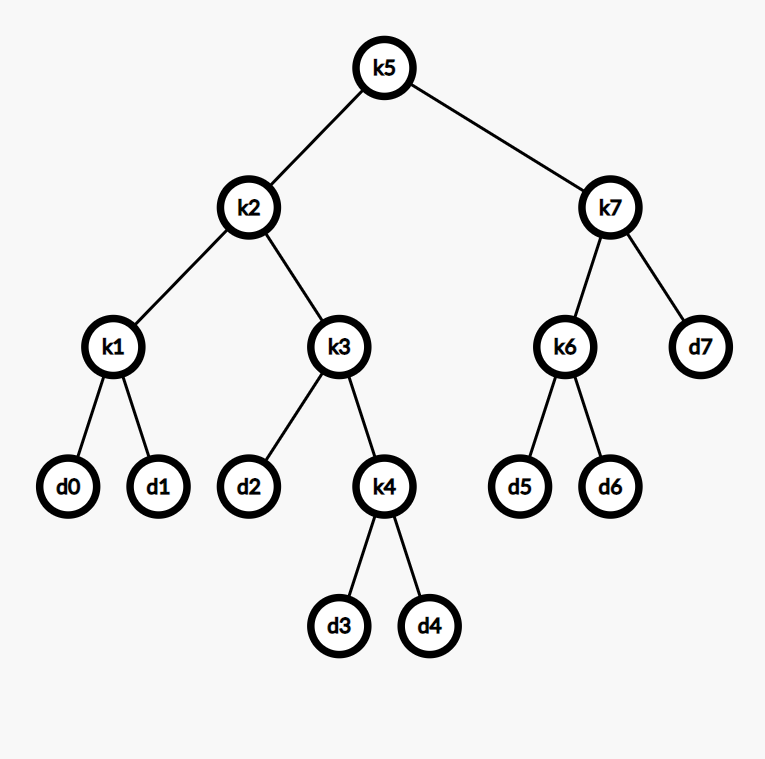 CONSTRUCT-OPTIMAL-BST(root, i, j, fa) if i == j - 1 name = "d" + i else name = "k" + root[i, j] if fa == 0 print name + "is the root" else if j < fa print name + "is the left child of" + " k" + fa else print name + "is the right child of" + " k" + fa if j >= i CONSTRUCT-OPTIMAL-BST(root, i, root[i, j] - 1, root[i, j]) CONSTRUCT-OPTIMAL-BST(root, root[i, j] + 1, j, root[i, j])