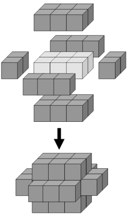 笔者空间想象能力不太行,因此在这里使用基于广度优先搜索的方式,首先求出每一层所需要的正方体块数。