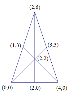 Consider an equilateral triangle in which straight lines are drawn from each vertex to the middle of the opposite side, such as in the size \(1\) triangle in the sketch below.