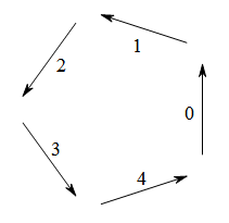我们为每个初始方向标上一个序号,按照题意,当前如果行走的是第\(i\)个方向,那么下一步只能是第\((i+1)\% 5\)或者是第\((i-1)\%5\)个方向。