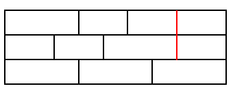 For example, the following \(9\times3\) wall is not acceptable due to the running crack shown in red: