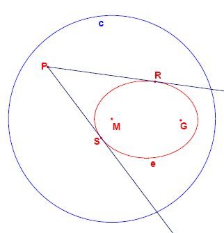 Given a circle \(c\) with centre \(M\) and radius \(r\) and a point \(G\) such that \(d(G,M)<r\), the locus of the points that are equidistant from \(c\) and \(G\) form an ellipse.
