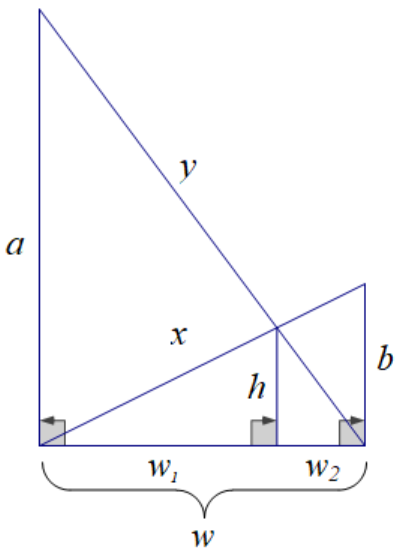 \[\dfrac{h}{w_1}=\dfrac{b}{w},\dfrac{h}{w_2}=\dfrac{a}{w}\]