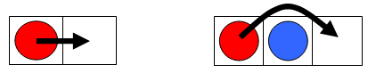 A counter can move from one square to the next (slide) or can jump over another counter (hop) as long as the square next to that counter is unoccupied.