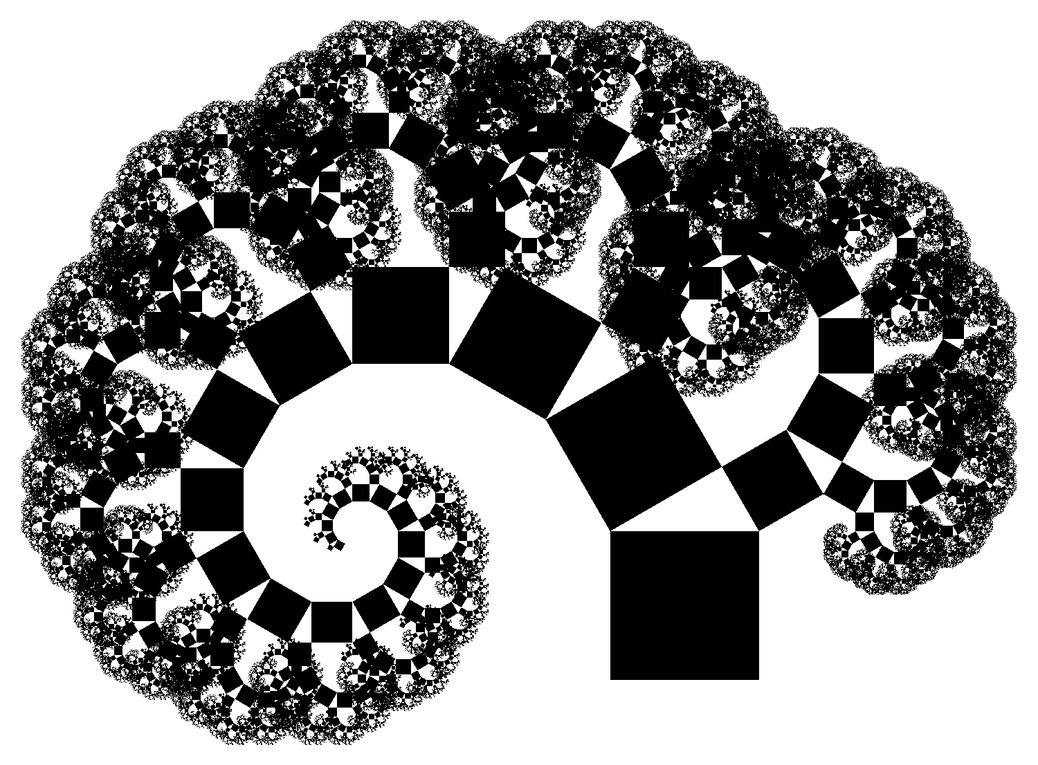 The resulting figure, after an infinite number of iterations, is the Pythagorean tree.