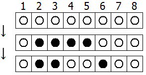 The following example shows the case \(N = 8\). At the first turn \(A = 5\) and \(B = 2\), and at the second turn \(A = 4\) and \(B = 6\).